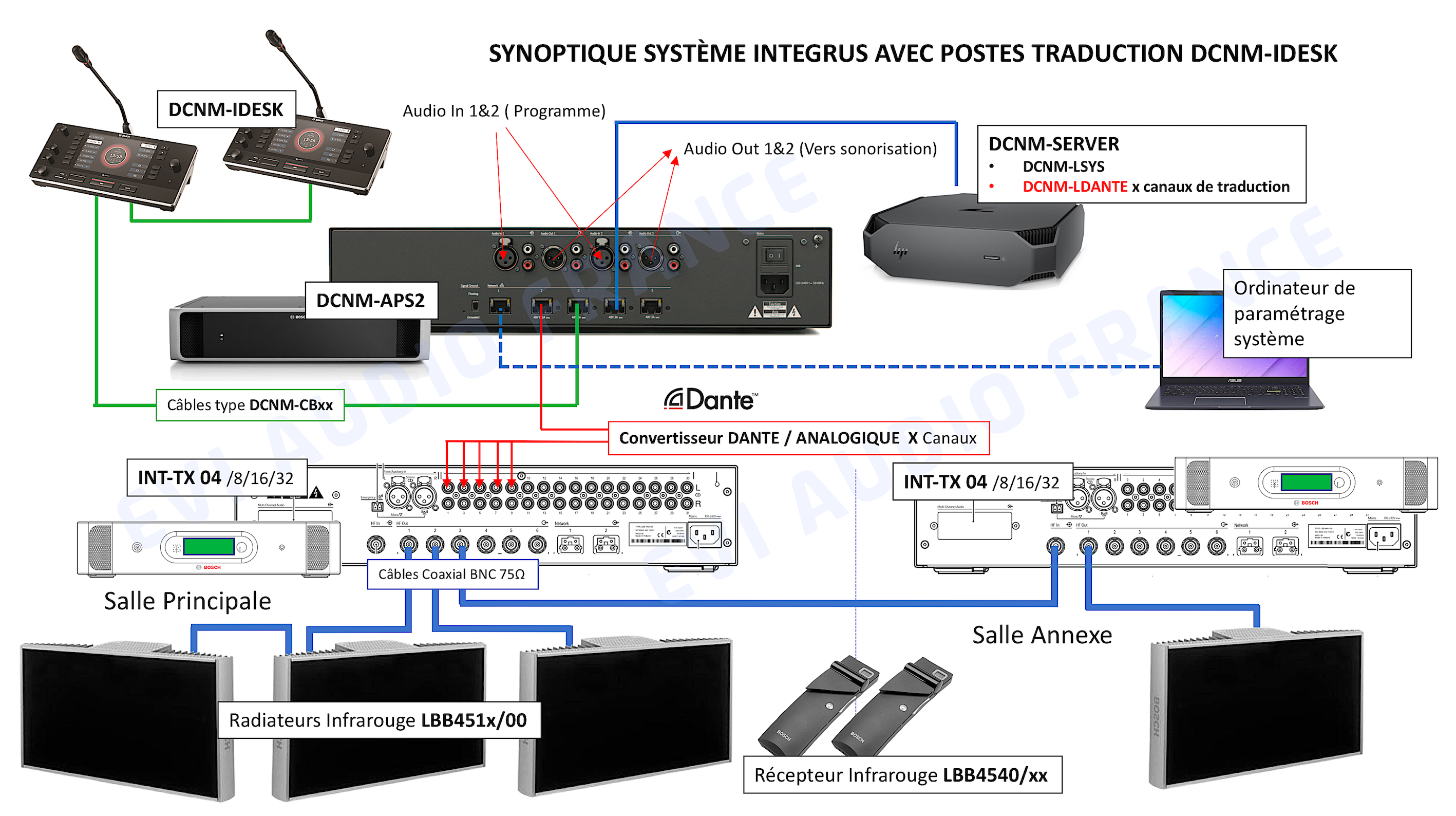 - DCN-IDESK : Pupitre interprète 31 canaux DCN NG + floor conforme ISO 2603, compatible 6 pupitres par cabine, étudié pour les malvoyants, touches d’aide, etc. Nécessite un DCN-CCU2 pour fonctionner avec les INT-TX.